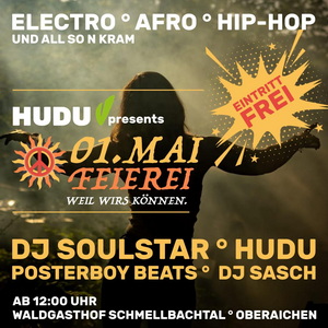 Wir bringen euch zusammen, drehen die Musik auf und feiern gemeinsam draußen – entspannt, ungezwungen, Musik for free und genau so, wie HUDU eben ist. Mit dabei sind die DJs HUDU, DJ Soulstar, Posterboy Beats und DJ Sasch